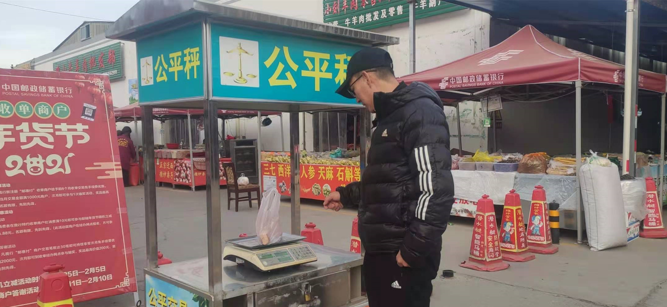 在市场显著位置放有公平秤,在各商铺的显著位置设有监督电话,便于市民监督,确保文明诚信服务、安全放心消费。